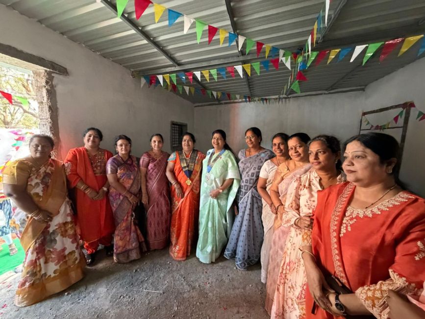 Upon her arrival, she inaugurated several service projects, including the Hayagreeva School dining hall and kitchen, distribution of sewing machines to women, installation of a sanitary napkin vending machine, and distribution of sarees to underprivileged women.