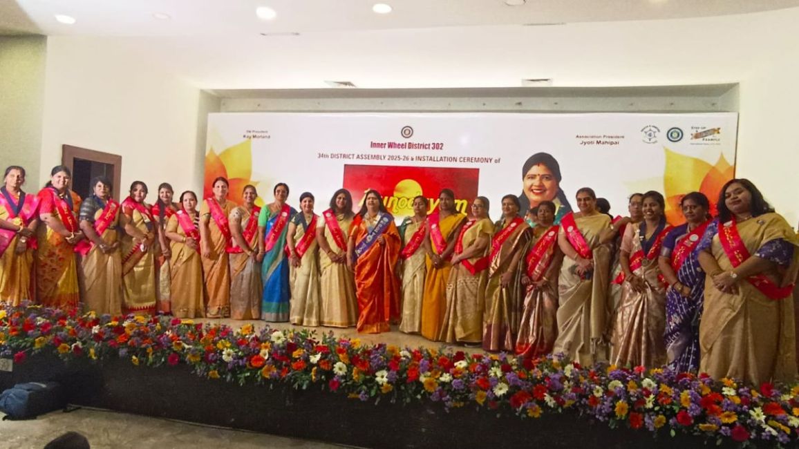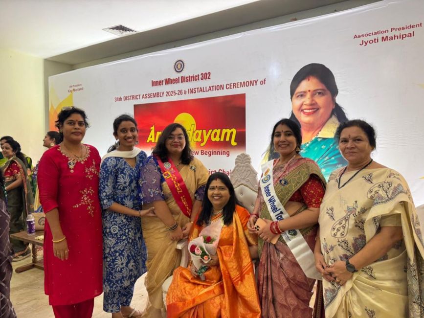 2025-26 President, Dr. Satya Bora was sashed by the incoming DC Aruna Sree gaaru as a Golden President.