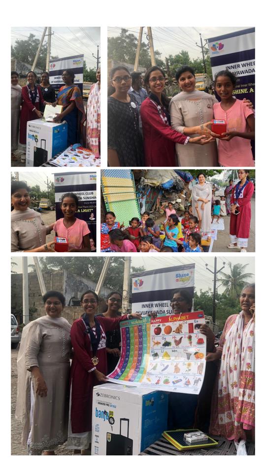 IWC VIJAYAWADA SUNSHINE donated Sound Box, Educational Charts, Slates, And White Board markers etc to help kids of rag-pickers residing in Gamela bazaar slum area who study in a local study center which is being supported by our club.